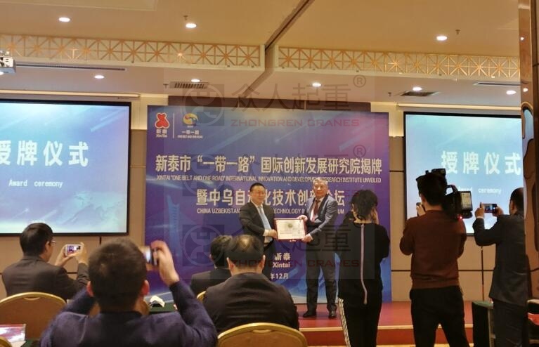 2019年12月26日,在新泰市榮峰國際飯店北樓三樓3號(hào)會(huì)議室舉行新泰市“一帶一路”國際創(chuàng)新發(fā)展研究院揭牌暨中烏自動(dòng)化技術(shù)創(chuàng)新論壇,山東龍輝起重機(jī)械有限公司作為新泰市科技創(chuàng)新20強(qiáng)企業(yè)代表出席參加。出席本次會(huì)議的主要領(lǐng)導(dǎo)有:新泰市市委副書記、市長趙書剛、副市長李斌、副市長于群、組織部長仇安源,相關(guān)部門單位負(fù)責(zé)人,烏茲別克斯坦有關(guān)專家,國內(nèi)相關(guān)行業(yè)專家。