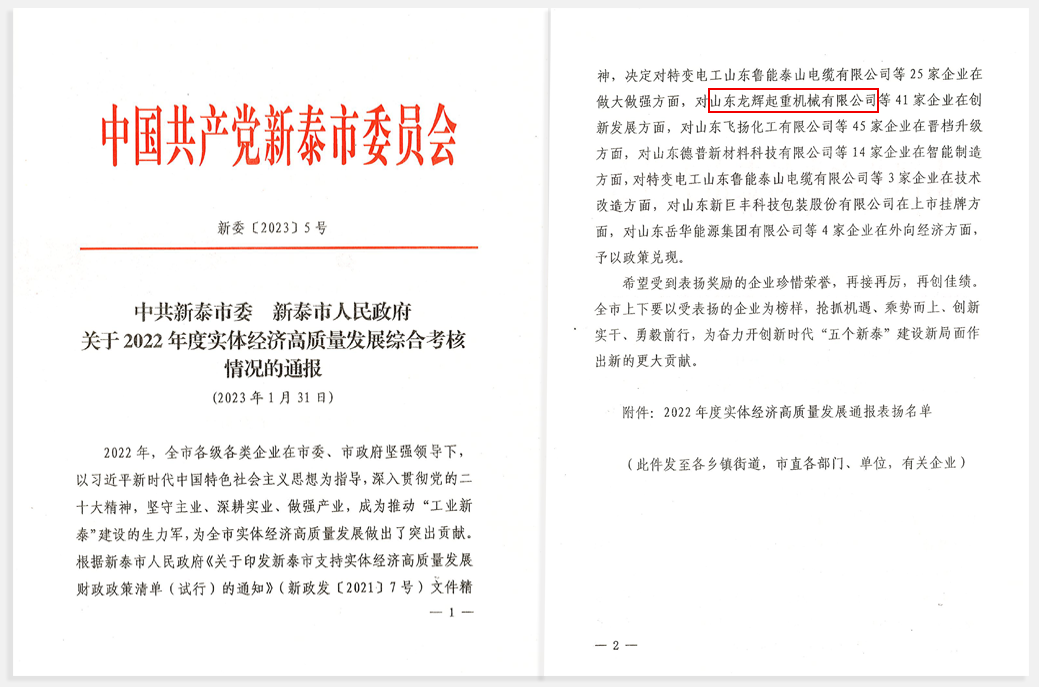 此次獲得多項(xiàng)殊榮,既是對(duì)龍輝起重全體職工一整年辛勤勞作的工作成果的褒獎(jiǎng),也包含著市委、市政府對(duì)龍輝起重的殷切期望。