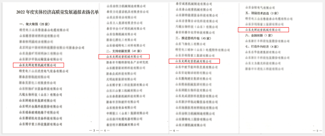山東龍輝起重機(jī)械有限公司凝心聚力、積極作為,共有7項(xiàng)工作獲得我市支持實(shí)體經(jīng)濟(jì)高質(zhì)量發(fā)展財(cái)政激勵(lì)政策中四項(xiàng)獎(jiǎng)勵(lì),獲獎(jiǎng)?lì)悇e及單項(xiàng)數(shù)量列全市第一,資金獎(jiǎng)勵(lì)列全市第三。